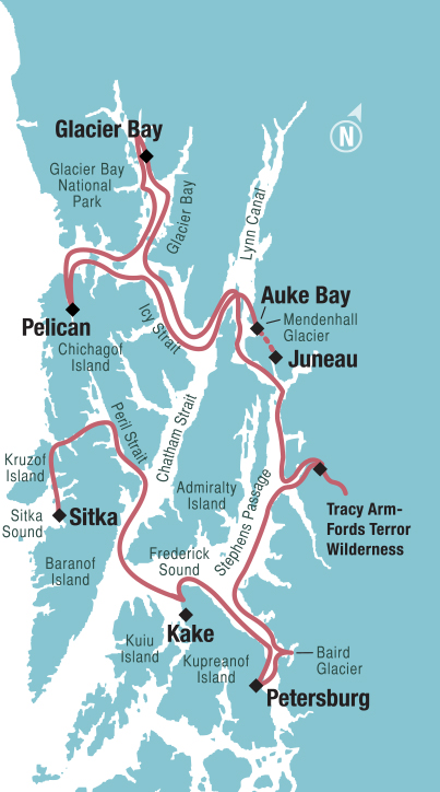 This itinerary is also available in reverse, traveling from Juneau to Sitka.