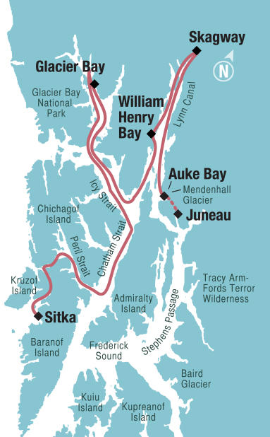 This itinerary is also available in reverse, traveling from Juneau to Sitka.